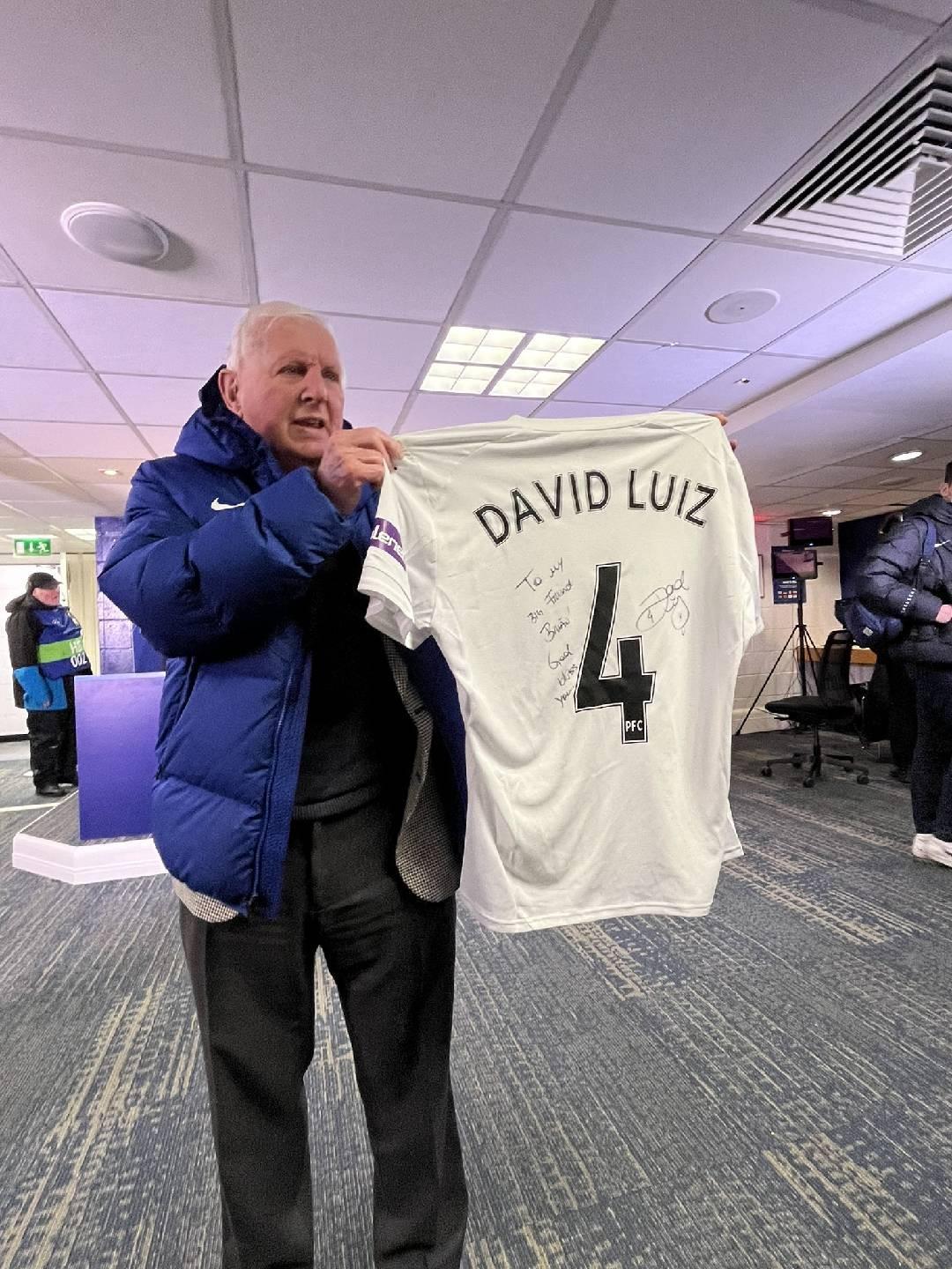 天博体育内容-大卫-路易斯送签名球衣给退休员工,后者为切尔西工作了56年